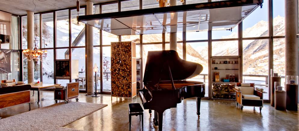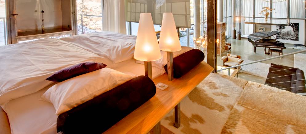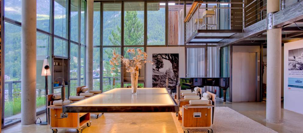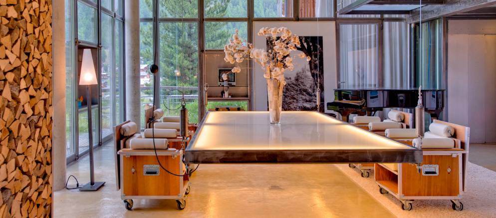 The Loft was Heinz’s private home where he hosted many rock-star parties. Access is a 2 minute walk from the top of the Omnia Hotel lifts, for which you will have a special key. The village end of the lift delivers you to the heart of Zermatt, in the main street close to the church. The sense of space, light and closeness to nature that the Loft provides is unparalleled: there are no barriers between the nature outside and the home space inside – all is fluid and free.