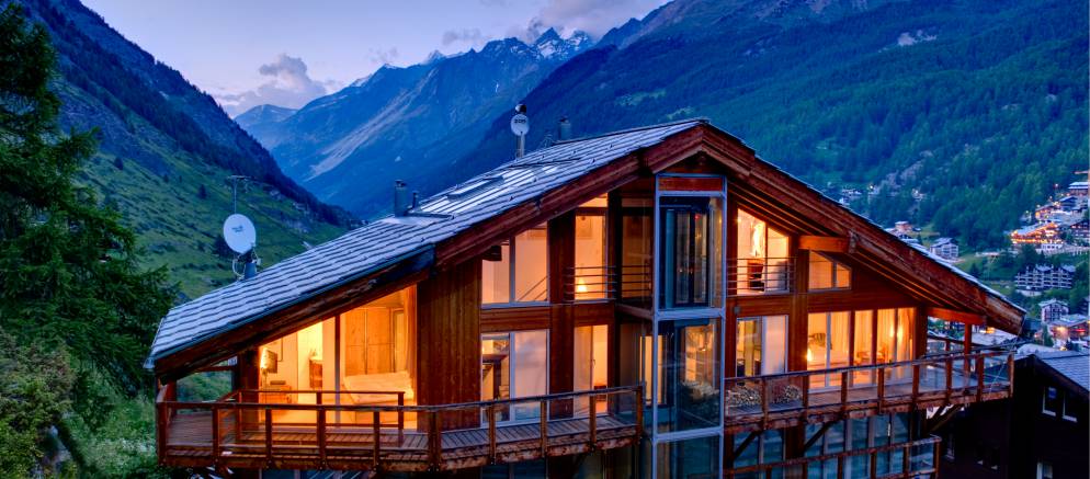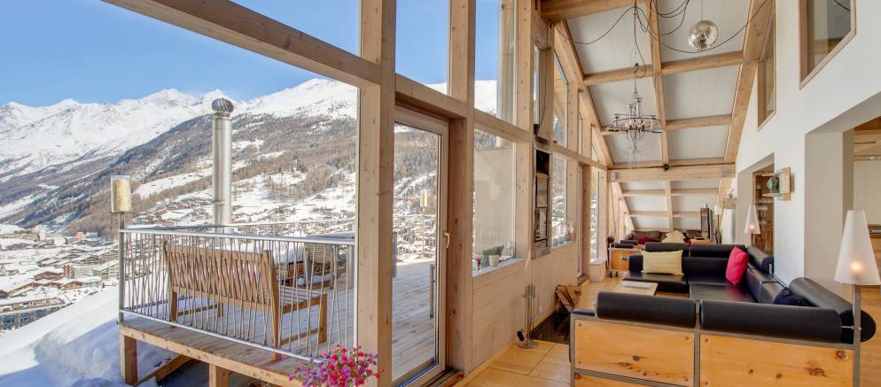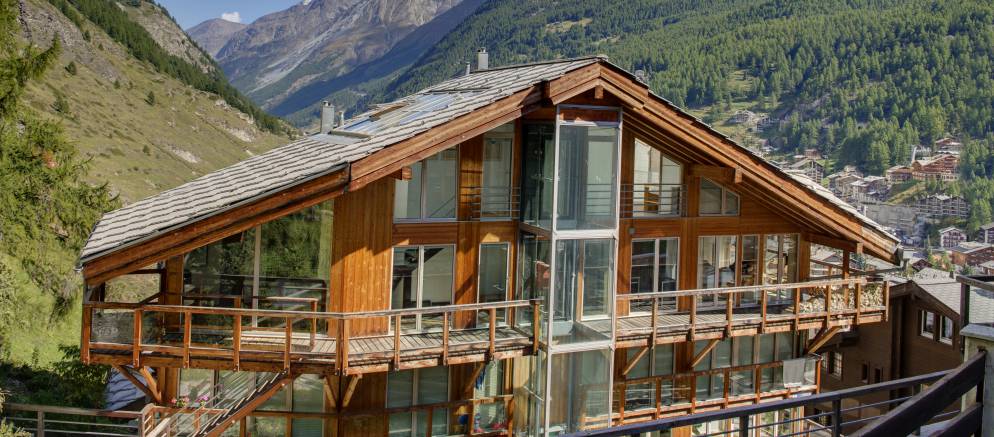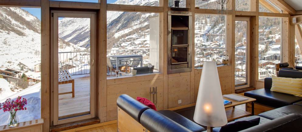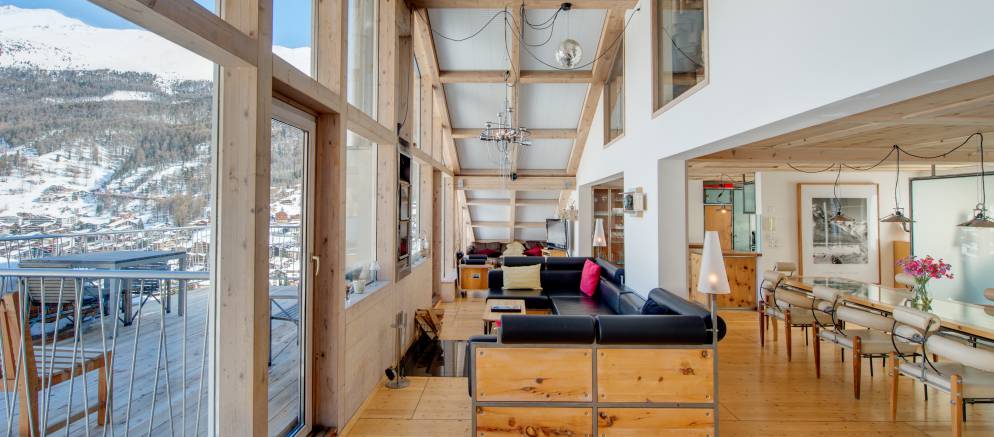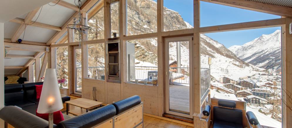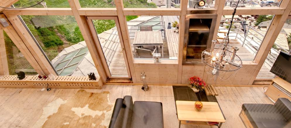 Very airy in feel, due to the extensive use of glass roofs, the chalet has a unique bird’s nest view of the village and the Mischabel mountains. Access is a 2 minute walk from the top of the Omnia Hotel lifts, for which you will have a private key. The village end of the lift delivers you to the heart of Zermatt, in the main street close to the church.