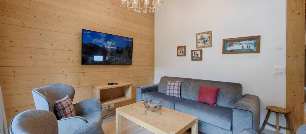 The decor has been done in a beautiful alpine style, there is a spacious open plan lounge and dining area, open fire and modern fully fitted and equipped kitchen. The kitchen has an electric hob and oven, dishwasher, Nespresso machine, toaster and kettle.