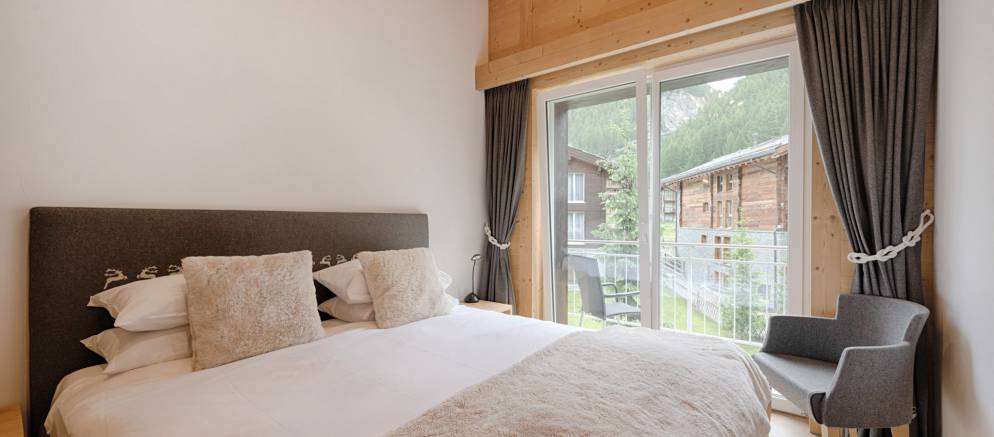 The centre of Zermatt is 15-20 minutes walk or 6 minutes in an electo-taxi or on the bus. From the chalet you can ski through the meadow and down to the Klein Matterhorn Express and you can ski back to the door of the chalet down the Moosweg ski-run.