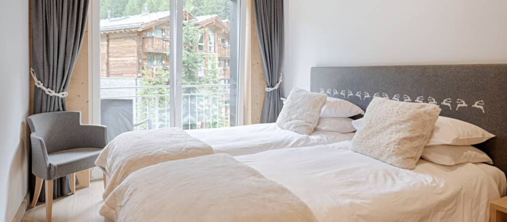 Double or Twin bedroom en suite bath, steam shower, WC. Balcony with Weisshorn view and satellite TV.