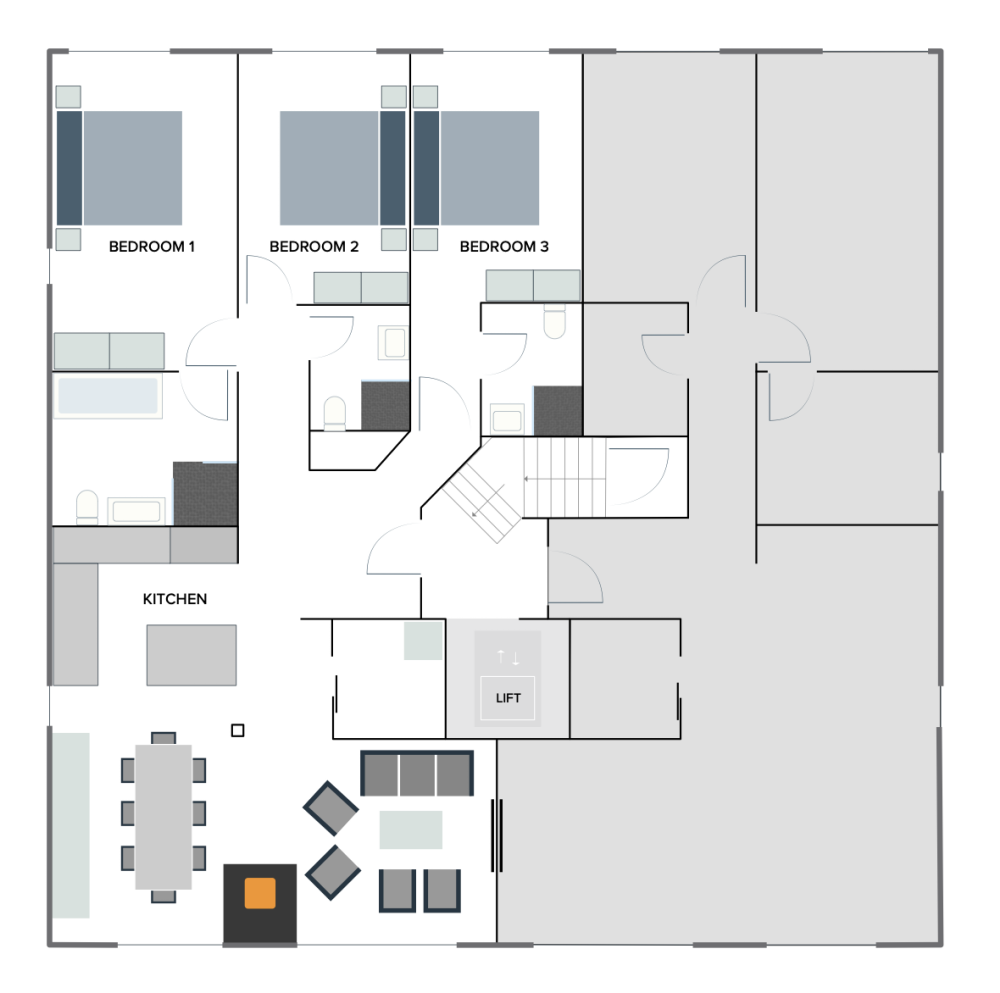 Tuftra Penthouse 6 is directly next to Tuftra Penthouse 4 and can be booked separately or taken together to form Tuftra Penthouse 10 to accommodate larger groups of 10. By renting both apartments you would enjoy the entire top floor of the building.